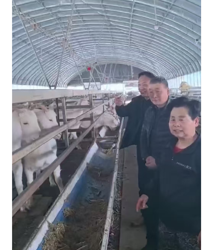 (图注:德源白山羊专业合作社社长、女强人肖亚新与团队成员一同巡视春节出栏羊场)