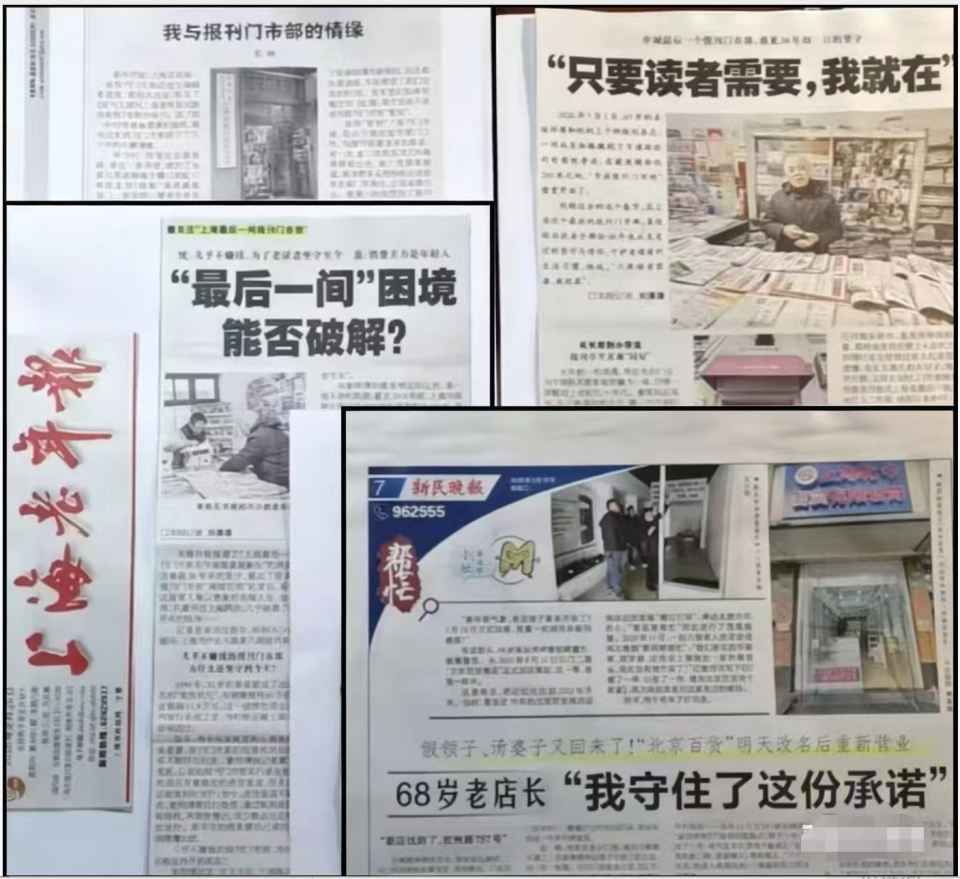 (图注:上海媒体聚焦最后一家报刊门市部、北京百货商店焕新重启的专题报道截图)
